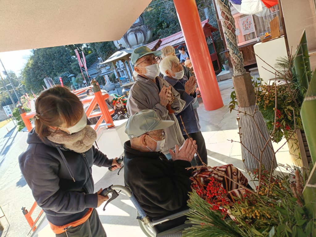 さて、今日も利用者様と初詣に行ってきました〜