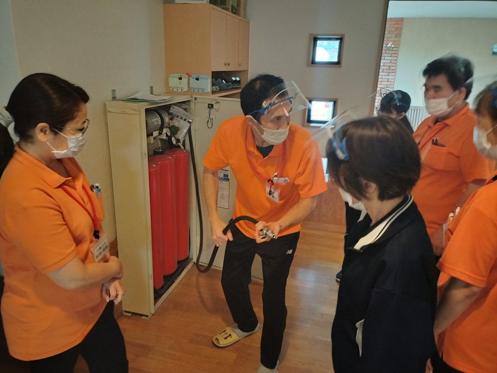 消火設備の使用方法の確認を行いました。